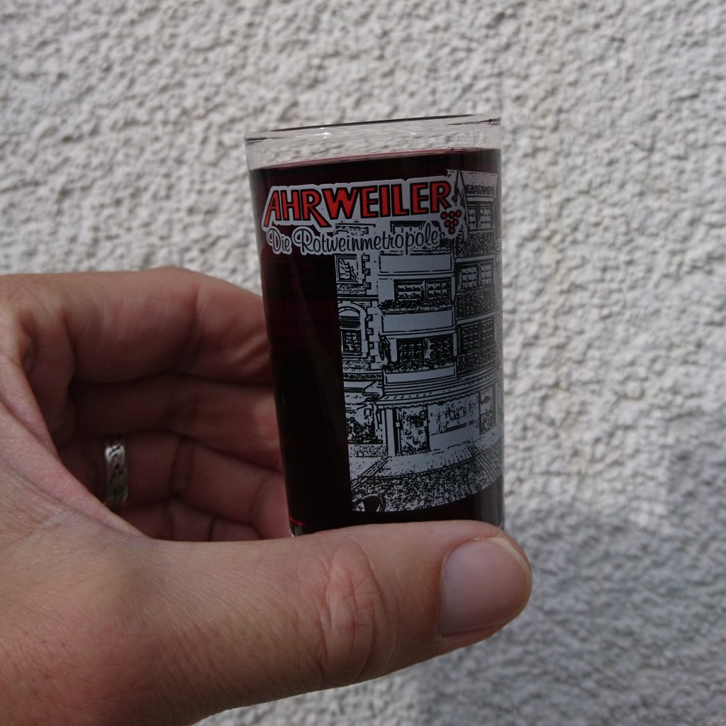 Heute mal nichts mit Musik. Stattdessen erinnere ich mich an einen Ausflug im Sommer 2016. Ich war für ein Wochenende in dem wunderschönen Örtchen Ahrweiler, das für seine Weine bekannt ist. Es war ein toller Ausflug! Die Menschen waren sehr nett und gastfreundlich. Abends gab es standesgemäß eine Weinprobe – das Gläschen auf dem Foto durfte ich als Andenken mitnehmen.