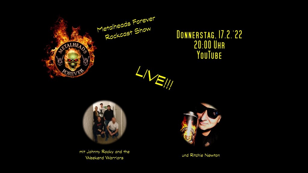 am kommenden Donnerstag könnt ihr uns live sehen! Allerdings werden wir nicht auf irgendeiner Bühne stehen, sondern gemütlich im Wohnzimmer herumlungern. Mit den Füßen auf dem Tisch und Chipskrümeln auf der Couch werden wir uns bei YouTube einklinken. Ritchie Newton, der Moderator der Sendung „Metalheads Forever“, hat sich schon ein paar knifflige Fragen ausgedacht, die wir im Interview beantworten werden.