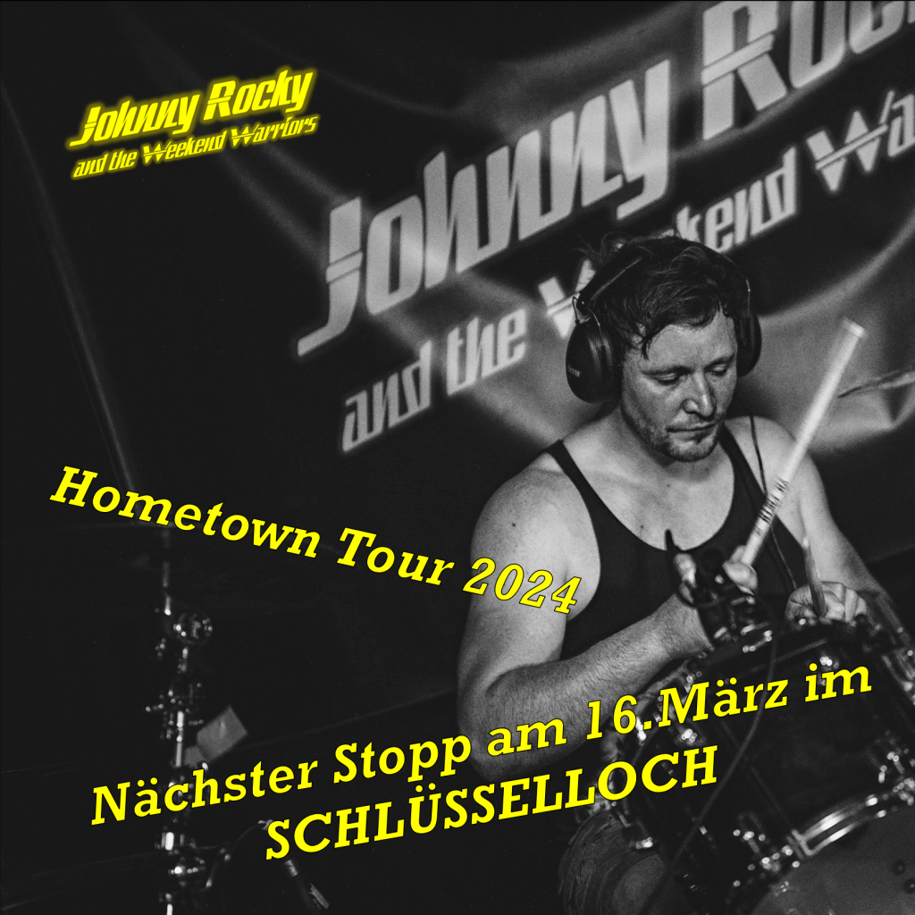 Für das Jahr 2024 haben wir uns etwas ganz Besonderes überlegt: Wir spielen eine Hometown Tour! Warum in die Ferne schweifen, wenn es angeblich in Aachen immer noch Menschen gibt, die uns noch nie live gesehen haben? Wir wollen allen Musikfans in Aachen die Chance geben, uns endlich einmal auf der Bühne zu sehen und zu hören. Und das ohne weite Wege! Im kommenden Jahr gibt es also für ganz Aachen die Möglichkeit, superbequem zu Fuß zum Johnny-Rocky-Konzert zu laufen (naja, wer in Sief oder Horbach wohnt muss wohl ein paar Kilometerchen Wegstrecke einplanen).