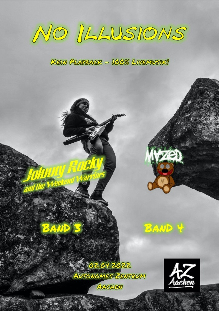 Auch im kommenden Jahr wird es ein „No Illusions“ geben – und wir sind wieder dabei! Zusammen mit drei weiteren Bands rocken wir das AZ Aachen. Kein Aprilscherz – das Ganze findet am 01.04.2023 statt. Rock on!